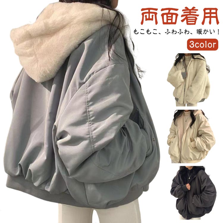 裏ボア ボアジャケット 厚手 もこもこ 保温 冬 ふわふわ アウター 両面着 レディース 秋 カジュアル ボア 中綿 ジャケット ブルゾン 学生 あったか 中綿ジャケット オーバーサイズ ゆった 防寒
