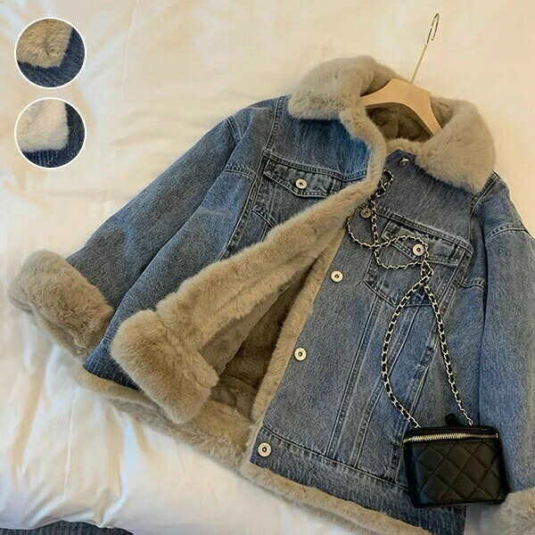 デニムコート デニムジャケット ファーコート ジージャン 裏起毛 レディース 秋冬 アウター ボアブルゾン 防寒 厚手 暖かい ショート丈 ボアコート 前開き 切り替え ポケット付き ボタン付き 襟