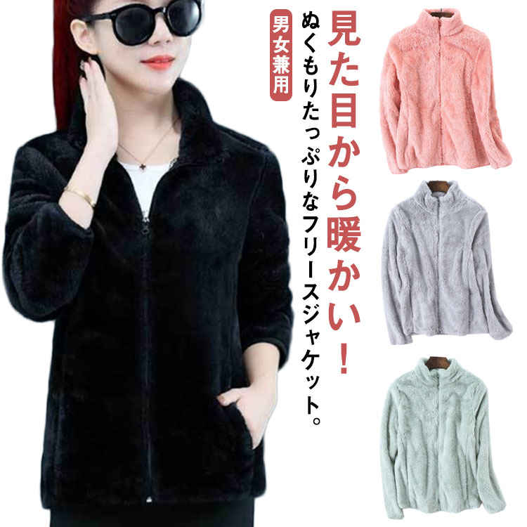 ユニセックス フリース 防寒 秋冬 メンズ レディース ジャケット パーカー ジップアップ フルジップ 男女兼用 立ち襟 ボアブルゾン ブルゾン もこもこ ふわふわ シャギーボア 大 長袖
