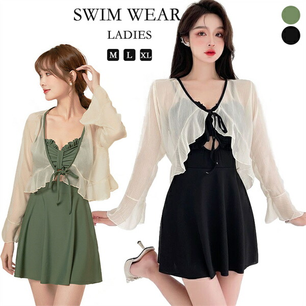 水着 レディース ボレロ 女の子 体型カバー みずぎ 紫外線カット ノースリーブ 長袖 トップス セクシー スクール スカート ブラウス ビーチ バックシャン 女性向け 太もも M L オトナ ママ水