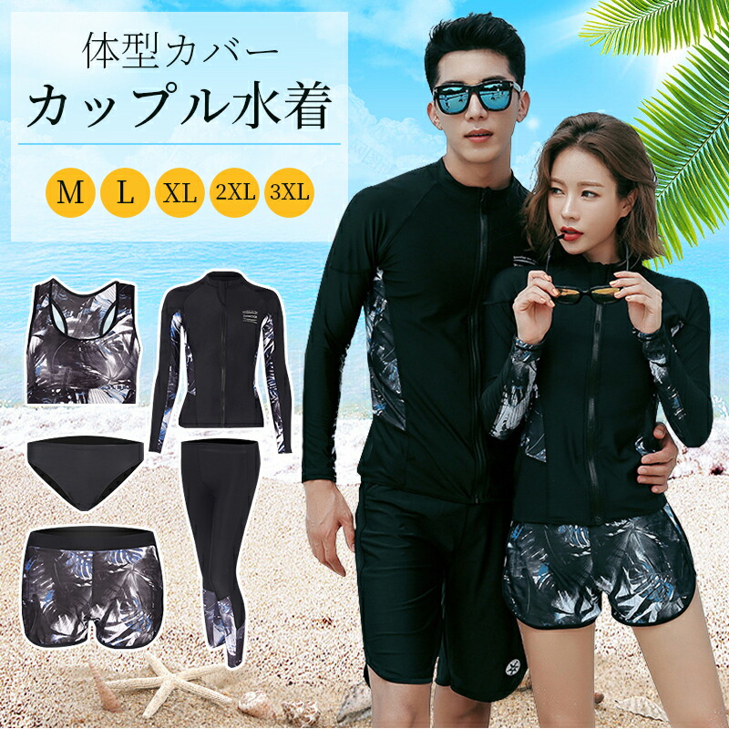 カップル 水着 フィットネス水着 水着 レディース ビキニ ラッシュガード ショートパンツ レギンス 上下5点セット ノンワイヤー