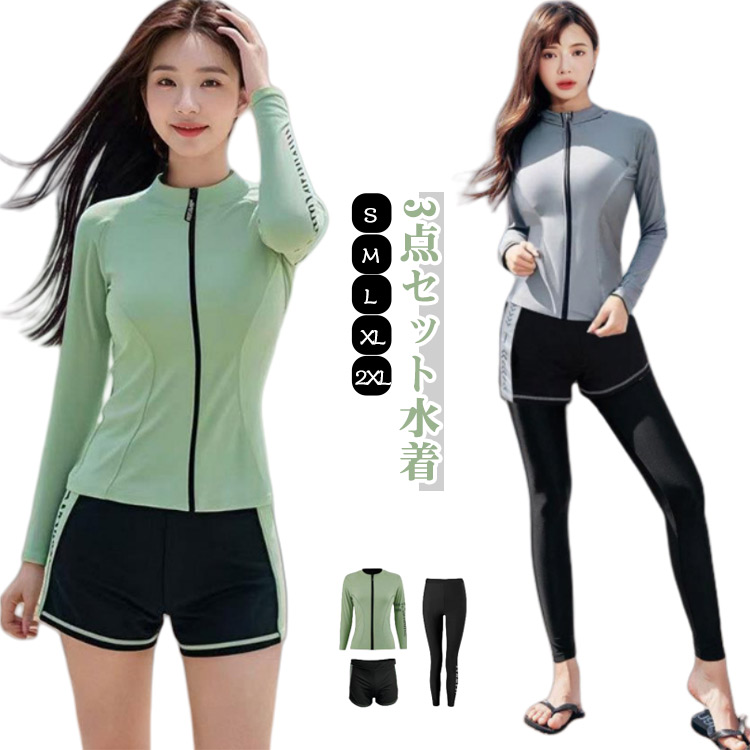 水着 レディース 体型カバー 小胸 中学生 高校生 3点セット 女の子 学生 スポーツ水着 ラッシュガード ショートパンツ ママ ビキニ みずぎ 露出控えめ 大きいサイズ セパレート