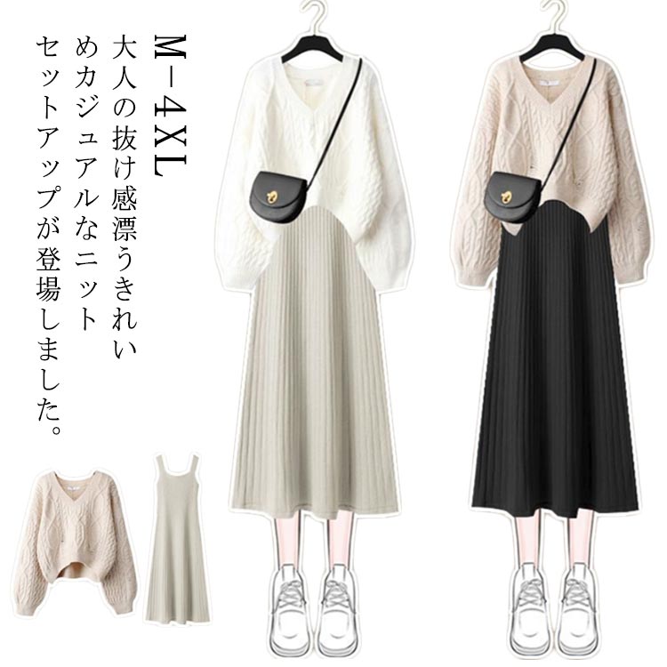 ニットセットアップ 春 冬 秋冬 春秋 ワンピース ニットトップス セーター ロングワンピース 大きいサイズ カジュアル おしゃれ