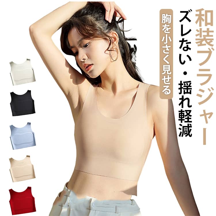 和装ブラ ハーフタンクトップ式 ノンワイヤー 着物ブラ シームレス 補正下着 肌着 通気性 胸つぶし 胸を小さく見せるブラ