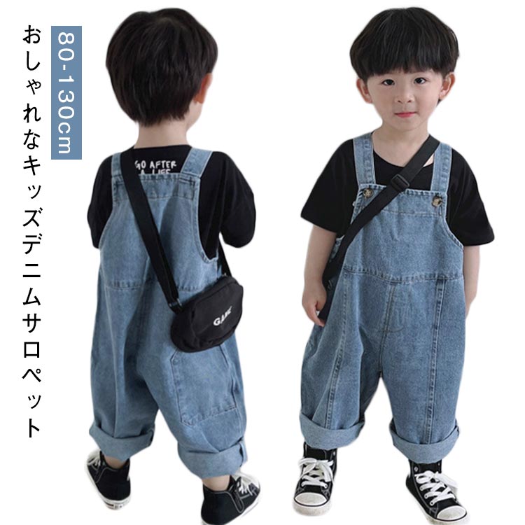 80-130 キッズ デニム サロペット ベビー ゆったり ワイド オーバーオール 子供服 女の子 男の子