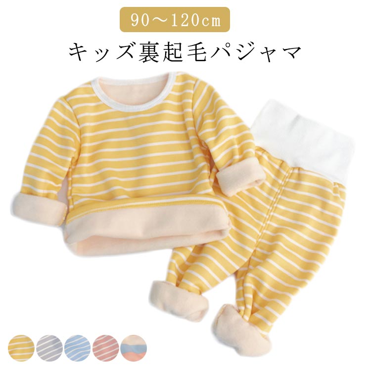100 部屋着 パジャマ キッズ 綿 ベビー 寝巻き モコモコ かわいい 上下セット 幼児 秋冬 冬用 女の子 男の子 長袖 腹巻付き 防寒 ストライプ柄 赤ちゃん 長ズボン 子供服 子ども服 暖かい