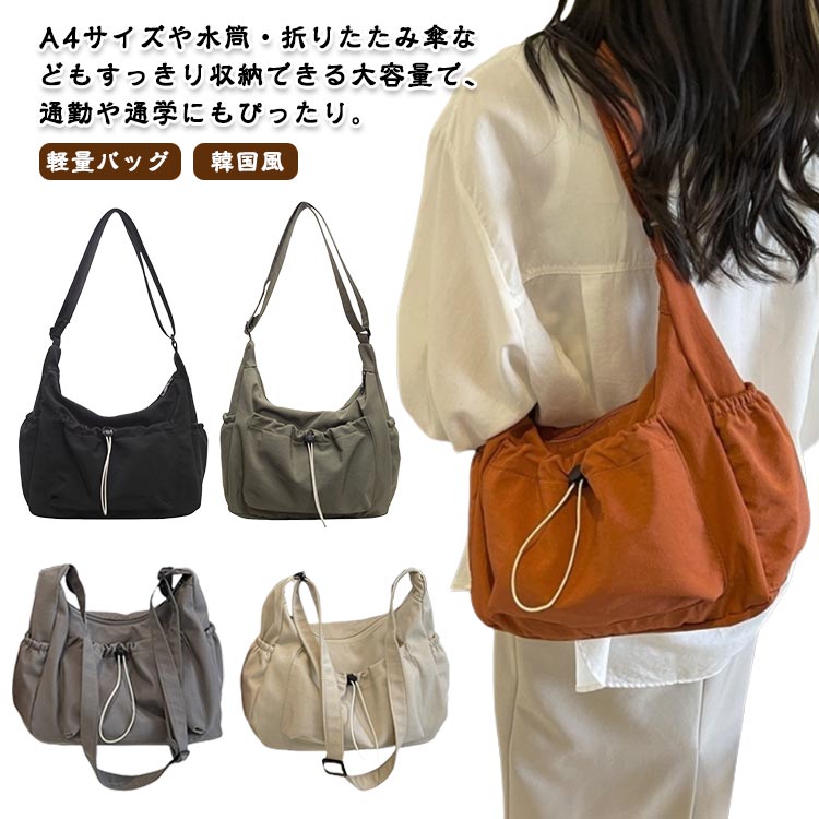 ショルダーバッグ レディース 軽量バッグ 韓国風 大人女子 ナイロンバッグ 斜めがけバッグ 大容量 無地 カジュアルバッグ 肩掛けバッグ 鞄 軽いバッグ