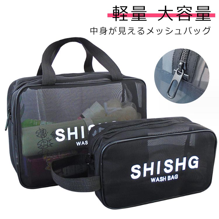 メッシュポーチ 水切り 温泉バッグ 大容量 旅行 中身が見える マチ付き 軽量