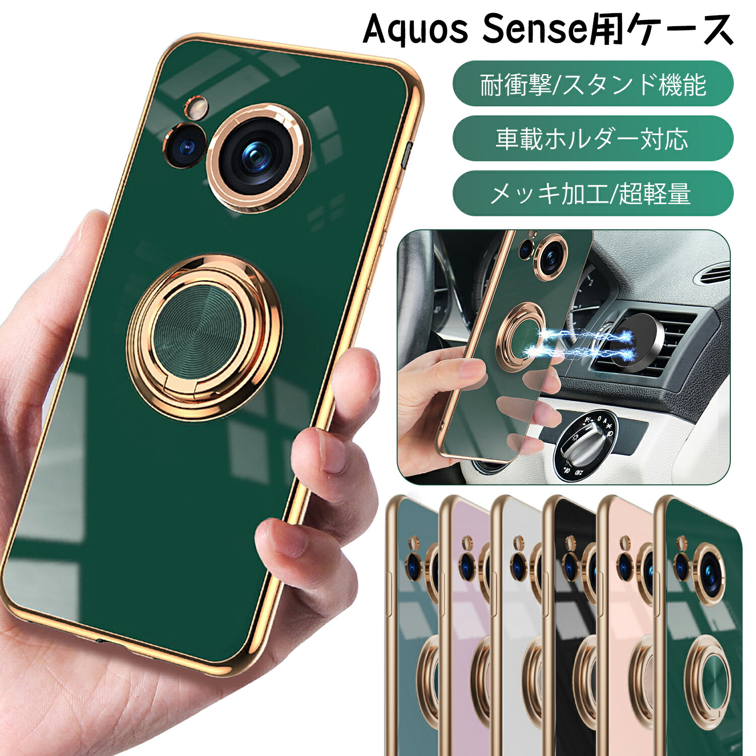 Aquos Sense9 ケース Sense 8 7 カバー スタンドケース スマホケース メッキ加工 保護カバー おしゃれ スタンド機能 車載ホルダー対応 リング付き