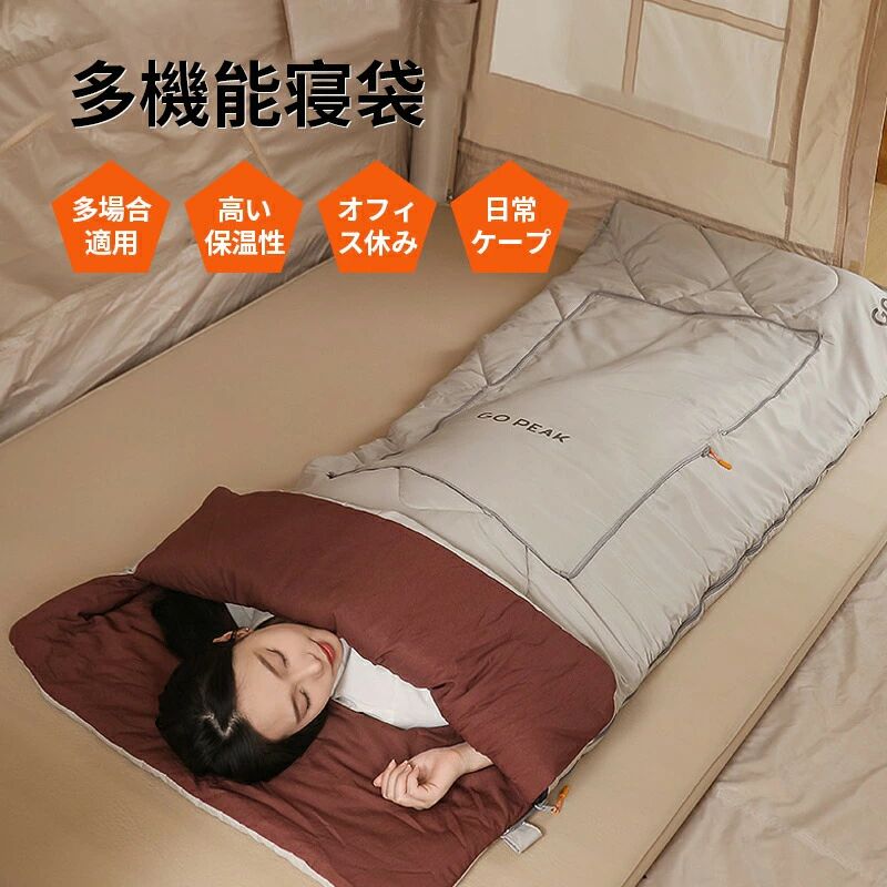 寝袋 封筒型 収納袋付き 多機能 シュラフ 防寒 大人 登山 キャンプ レジャー ツーリング アウトドア 車中泊 軽量 中綿 ふんわり マット オールシーズン 快適温度 春 ナイロン