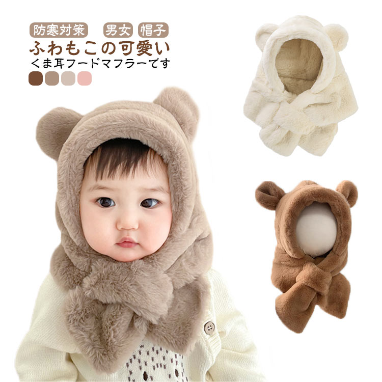 あったか 暖かい 帽子 フードウォーマー もこもこ フード付きマフラー 一体型 ベビー クマ耳 子供 マフラー ふわふわ ネックウォーマー 子ども用 防風 防寒 フェイスガード 男の子 女の子 くま耳
