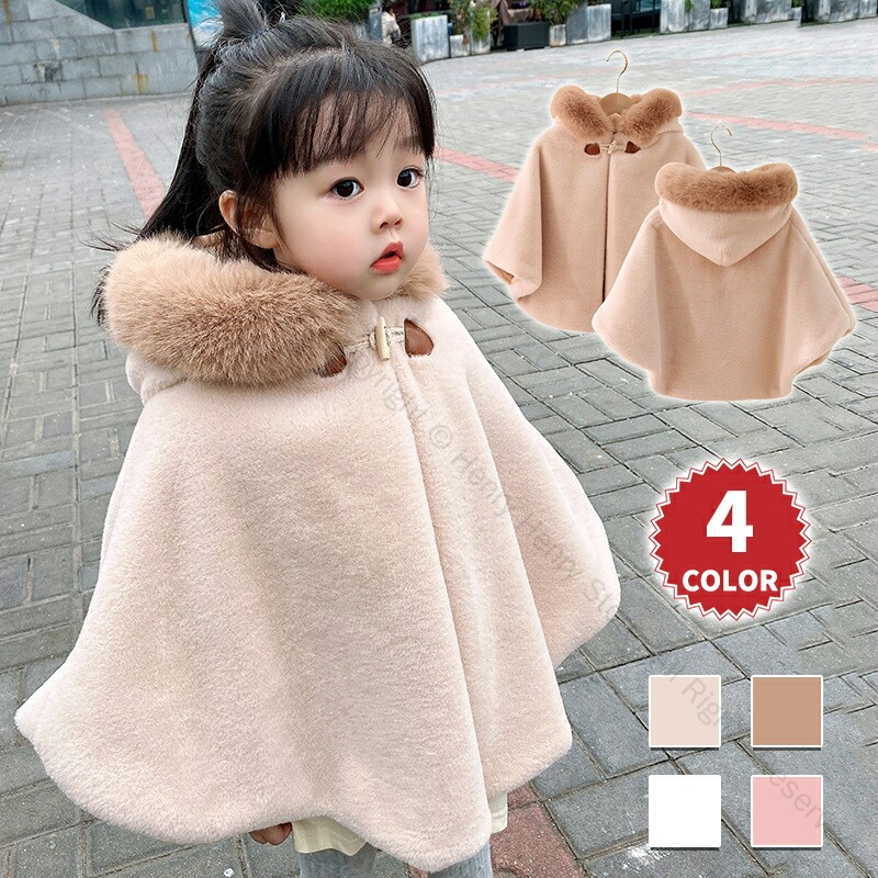 キッズ コート ポンチョ 子供 ケープ もこもこ 防寒 女の子 冬 マント こども ベビー ファー フード付き アウター 七五三 女 ジャケット