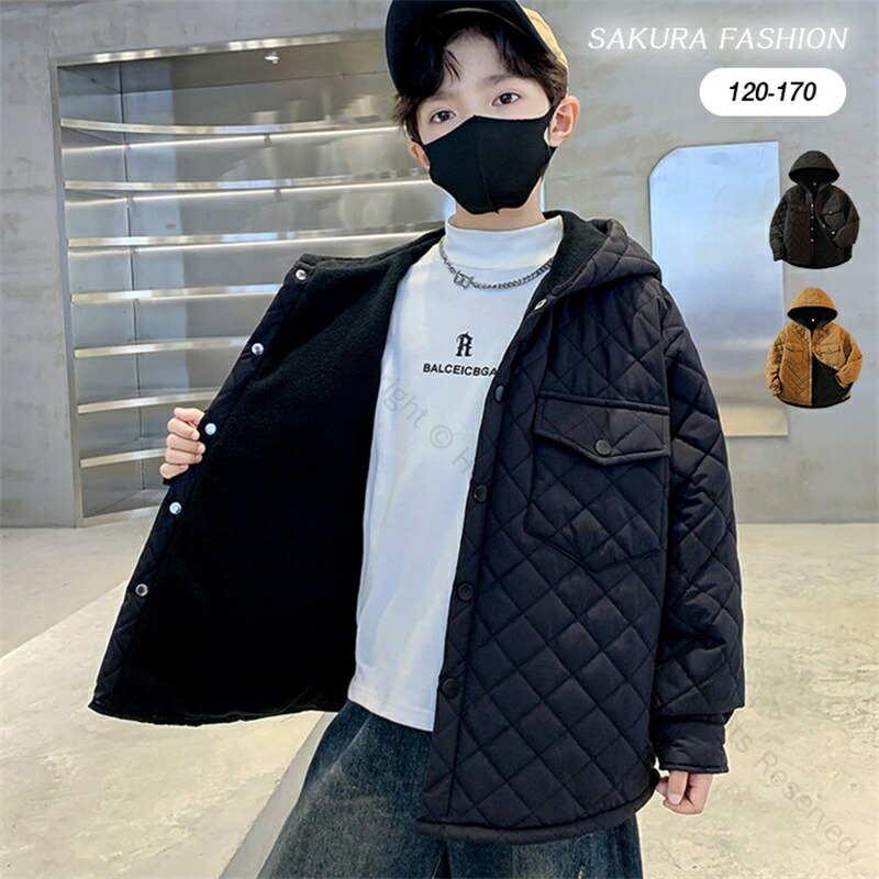コート 裏ボア 子供服 キッズ 男の子 ボーイズ 長袖 アウター 裏起毛 ボア モッズコート フード付き ゆったり キルティング 秋冬 防寒 120 130 150 160 170 140