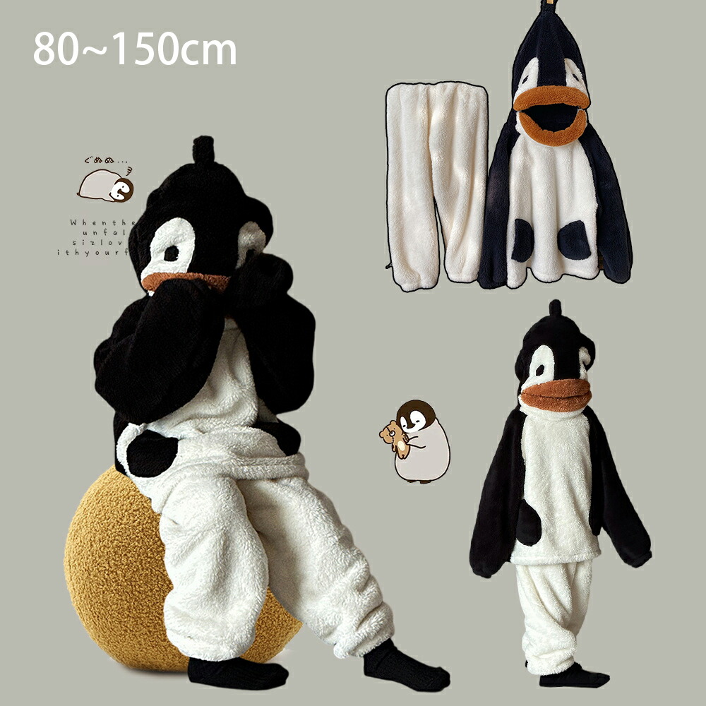 秋冬 保温 着る毛布 可愛い 部屋着 幼稚園 学校 通園 保育園 かわいいペンギンの部屋着 男女共通