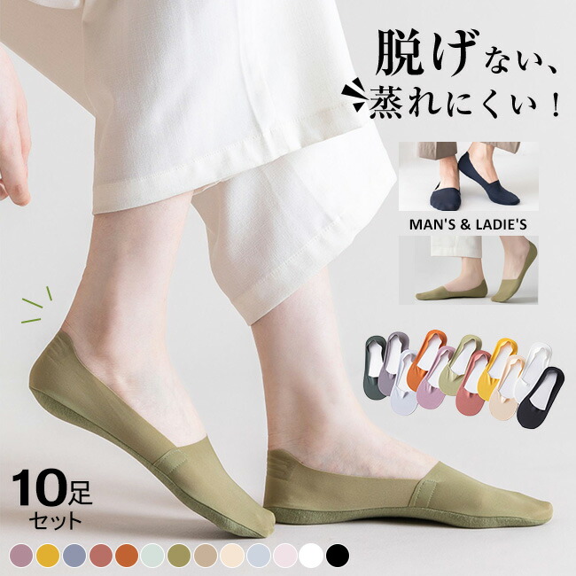 10足セット フットカバー カバーソックス 春新作 レディース メンズ ユニセックス 脱げない 靴下 パンプス ソックス くつした 快適 薄手 ズレない おしゃれ シンプル 滑り止め 歩きやすい 無地