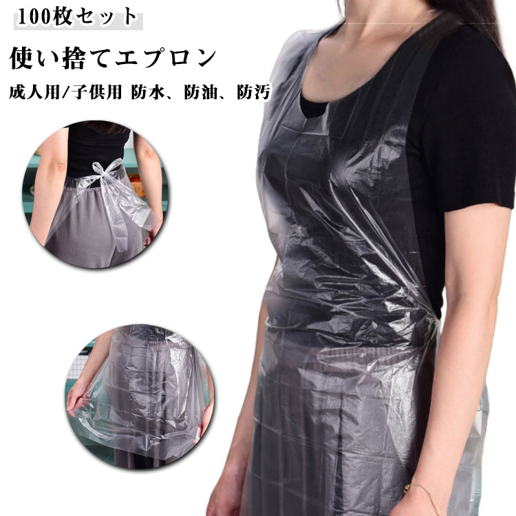 使い捨て エプロン ビニール 大人用 子供用 ビニールエプロン 介護 作業 防水 撥水 防汚 透明 クリア 男女兼用 袖無し 首掛け PE 結んでサイズ調整できる 入 ポリエチレン