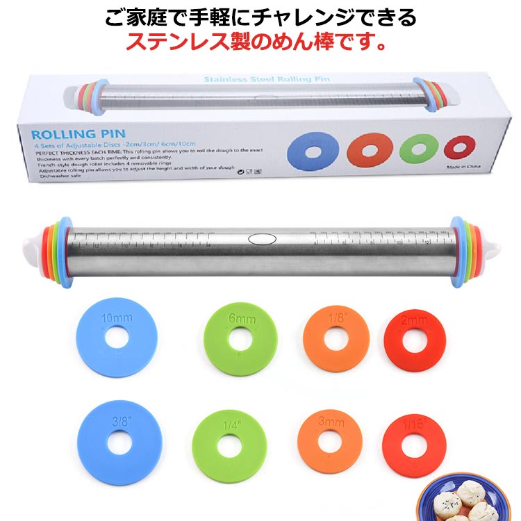 ステンレス製 めん棒 厚さ調節可能 餃子 クッキー ピザ お菓子作り 製菓道具 キッチン用品