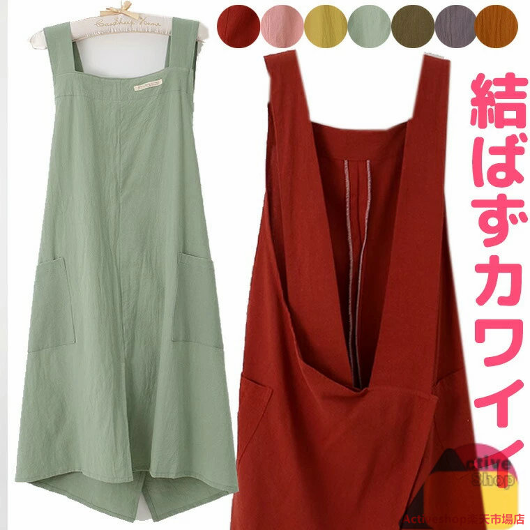 洋服感覚のエプロン カラフル 結ばず可愛い くすみカラー シンプ
