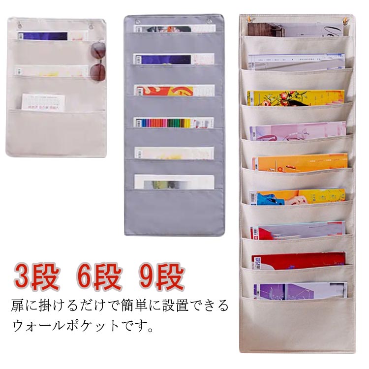壁掛けポケット ウォールポケット 3段 6段 9段 吊下げタイプ 書類収納 4 布製 ドアハンガーポケット