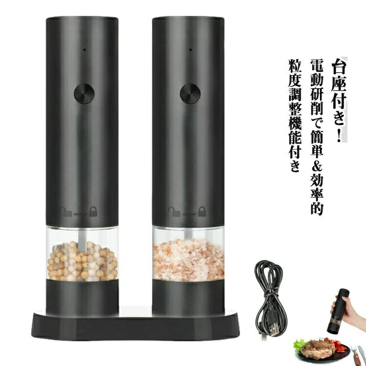 ペッパー 胡椒挽き 電動ミル マルチ 2本セット アウトドア 電動ペッパーミル 胡椒 岩塩 サンショウ 海塩 台座付き 家庭用 充電式 調味料 スパイス ペッパーミル おしゃれ 電動 台 グラインダー