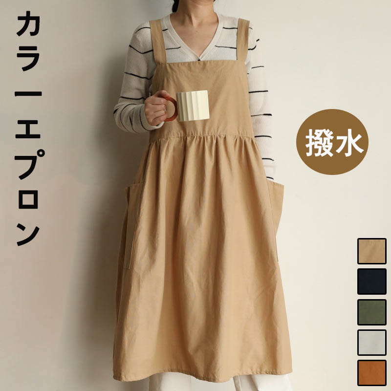 カラーエプロン ロング ひざ下 エプロン ワンピース 撥水加工 ポケット付き 長い ロングエプロン 保育士 ワークエプロン カフェエプロン おしりが隠れる ゆったり 体型カバー おしゃれ