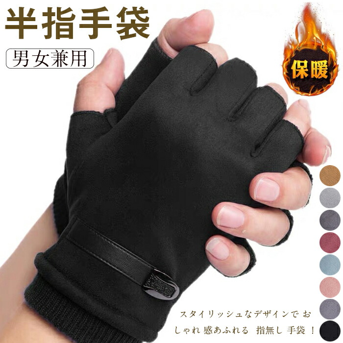 レディース 手袋 指なし スマホ対応 半指手袋 スエード革 防寒手袋 ハーフフィンガー グローブ 秋冬 防寒 暖かい 裏起毛 男女兼用 指無し 自転車 通勤 通学 室内 スポーツ