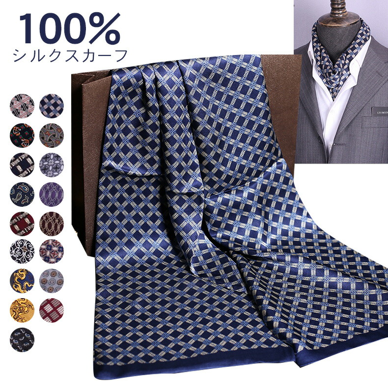 100%シルク マフラー メンズ 2層 シルクスカーフ メンズ ストール ビジネス 結婚式 薄手 秋冬 春夏 欧米風 各種カラー \送料無料