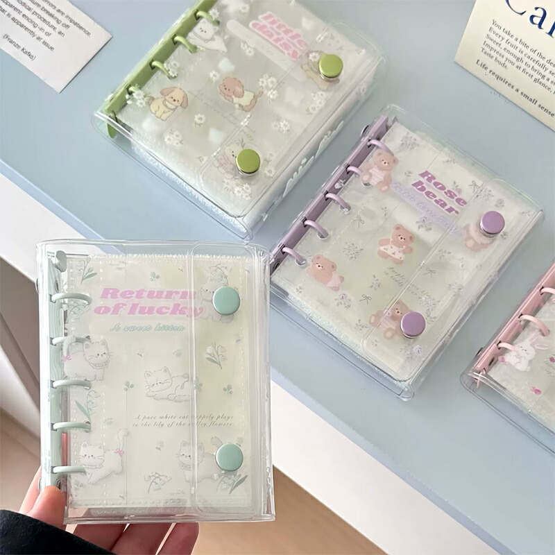 シール帳 透明 システム手帳 A5サイズ バインダー カード入れ 動物 猫 ウサギ柄タイプ クリア手帳 6穴リング カスタマイズ手帳 DIYデコ ミニ手帳 コンパクト手帳 PVCカバー リフィルセット