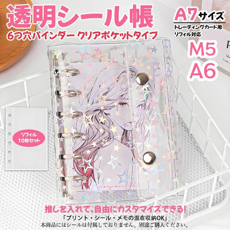 透明シール帳 リフィルセット M5 A6 A7 シール帳 透明 バインダー 星柄タイプ クリア手帳 6穴リング カスタマイズ手帳 DIYデコ ミニ PVCカバー スケジュール帳 かわい コンパクト手帳