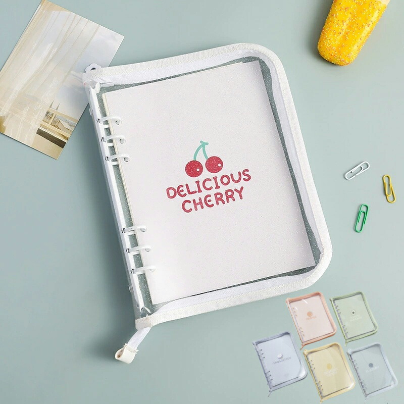 バインダー 透明 手帳 はがせる ジッパー手帳 女の子 A6 トレカ収納 6穴 クリア コンパクト シール台紙 コラージュノート シールバインダー A5 カスタマイズ シール帳 推し ファイ 手帳型
