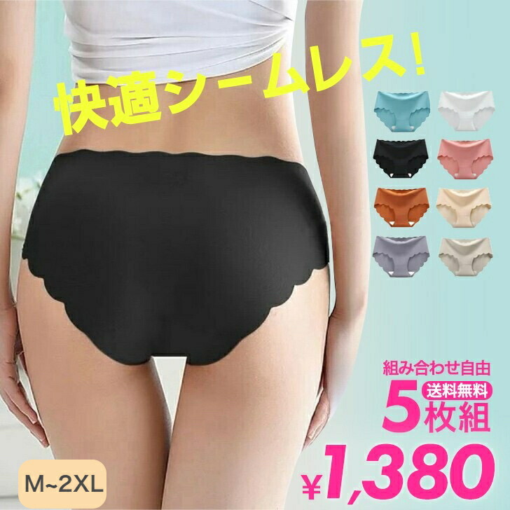 シームレスショーツ シームレスパンツ レディース 下着 ショーツ 5枚セット 色サイズ組み合わせ自由 ローライズタイプ スカラップカット 締め付けない 通気性 薄型 響かない アイスシルク スト 無地