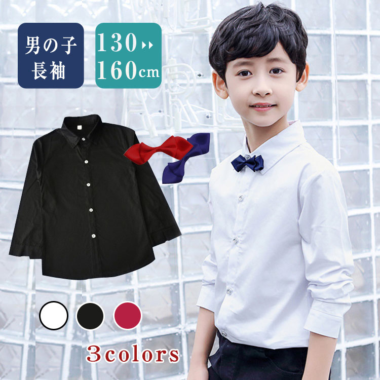 子供 ブラウス キッズ 長袖 シャツ 無地 ホワイト ブラック ワイン フォーマル 子供服 男の子 スーツシャツ 七五三 ワイシャツ ジュニ Yシャツ