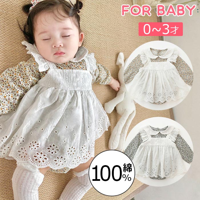 女の子 可愛い ロンパースドレス 秋冬 ロンパースワンピース レイヤードワンピース 花柄 ベビー服 外出 写真撮 綿100%