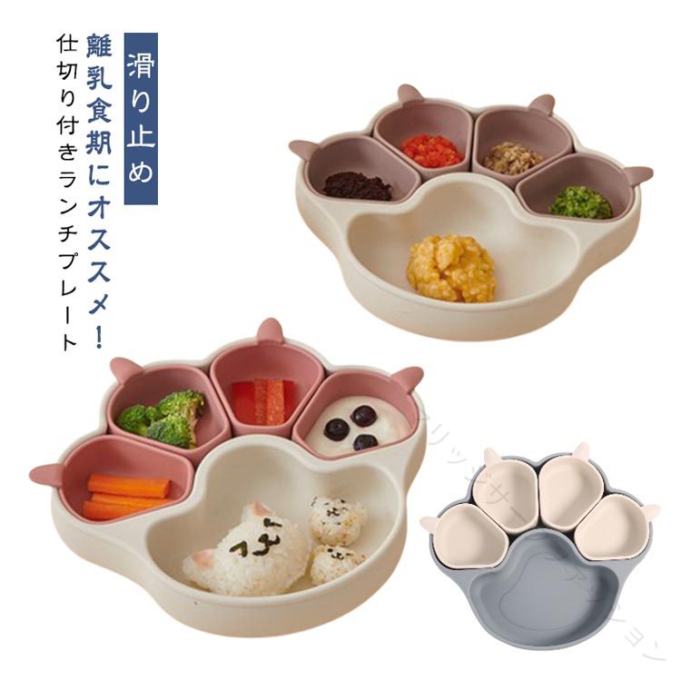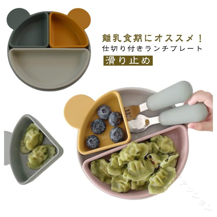 ベビー 食器 離乳食 用 シリコン プレート 吸盤 仕切り 滑り止め 皿 食洗機 対応 赤ちゃん キッズ プレゼント 出産祝い