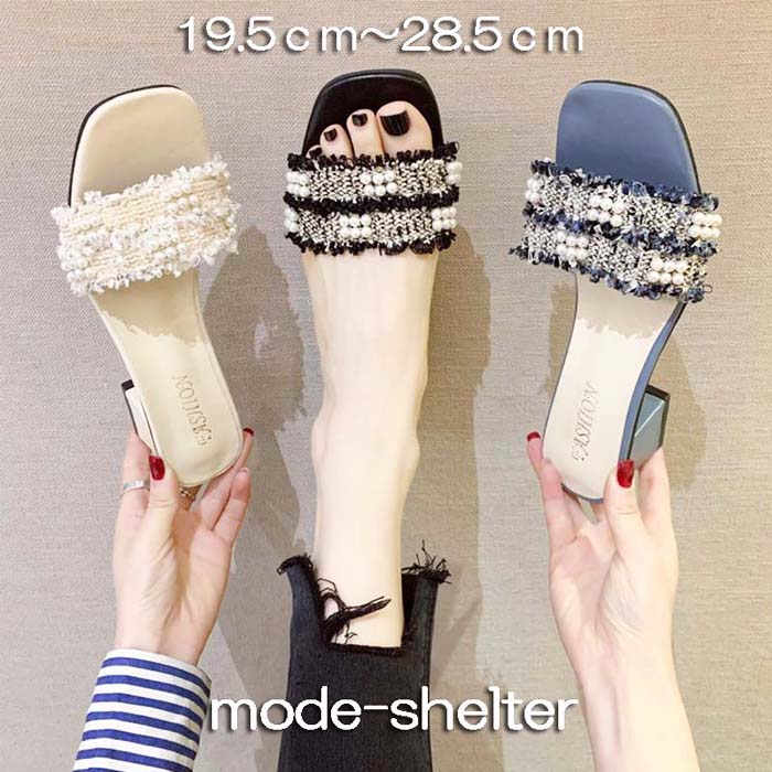 サンダル ミュール チャンキーヒール 太ヒール オープントゥ 19.