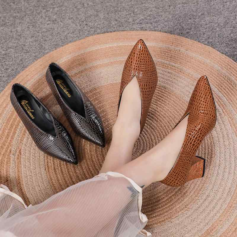 レディース パンプス レトロ ローカット ポインテッドトゥ チャンキーヒール パイソン柄 普段使い エレガント スタイリッシュ 春秋