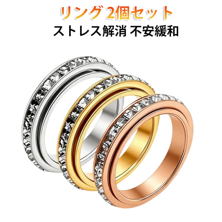 2個セット ストレス解消リング 指輪 リング ストレス解消リング 回転 不安緩和 ストレス解消 リング 友達 贈り物 美しい輝き