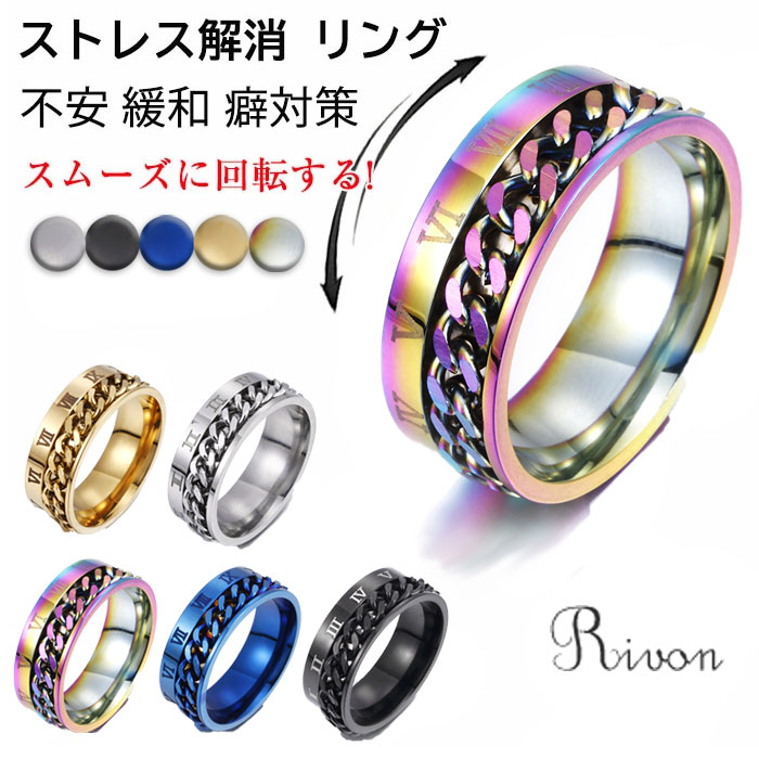ストレス 解消 リング フィジェットリング 不安解消 ステンレス 発散 緩和 リラックス 指輪 ペアリングにも ローズ 可動ランナー ストレス解消 オープンセット デート パーテ 不安を和らげるリング