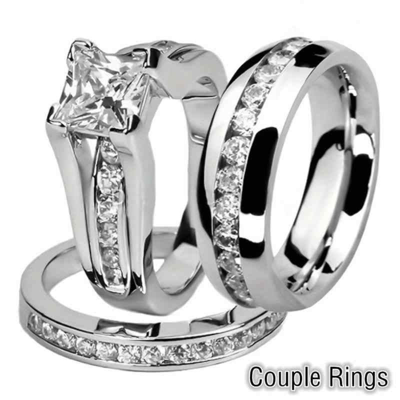指輪 男女用 婚約結婚 ジルコニア リング カップルセット ステンレス素材 花柄デザイン 幾何学パターン シルバー ファッション 通勤用 日常使い ゴールド