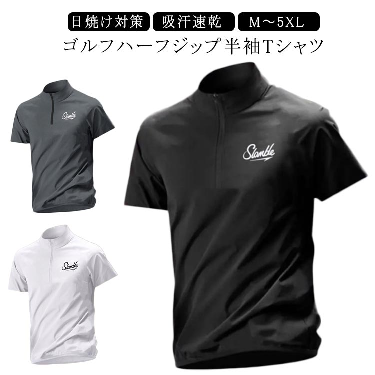吸水速乾 ポロシャツ 半袖 ゴルフ ハーフジップシャツ ゴルフウエア 送料無料 全3色 ~5 送料無料
