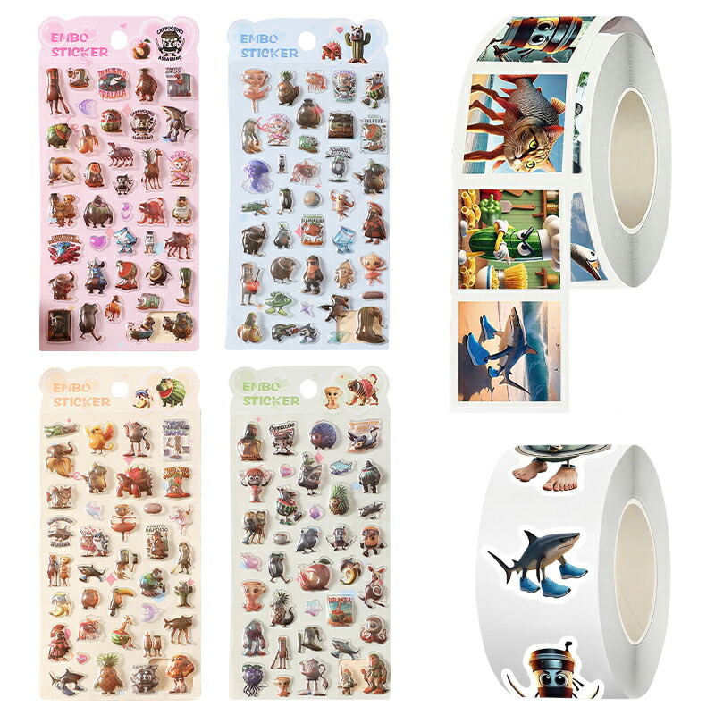 イタリアンブレインロット 3dシール 4枚セット ロールシール 2巻セット 1000枚 Italian brainrot 可愛い かわいい シール イタリアン グッズ ステッカー 手芸 ブレインロット