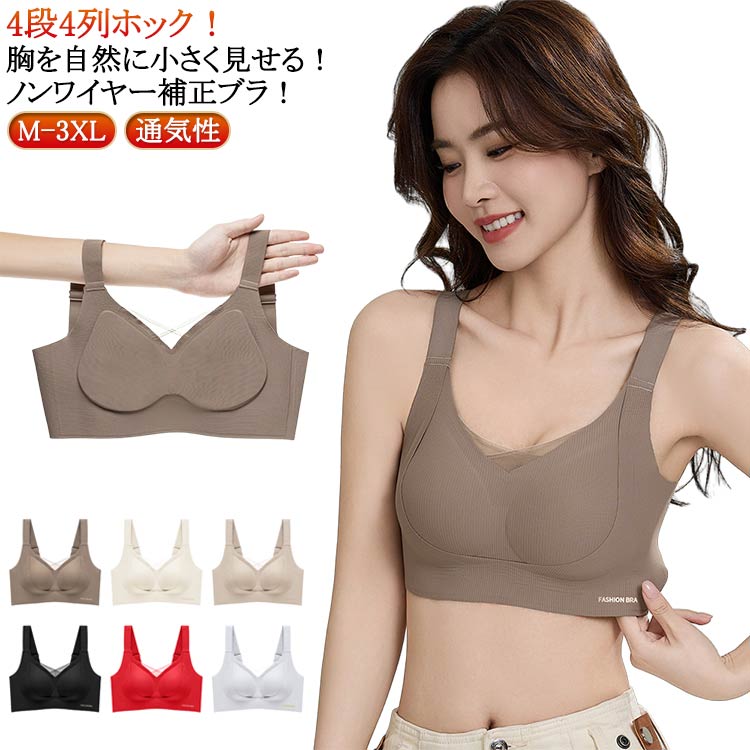 補正下着 レディース ストラップ 脇肉 ノンワイヤー 垂れ防止 脇高設計 引き締め 固定式カップ シームレス ブラジャー 通気性 快適 負担軽減 滑り止め 幅広 4段4列ホック 調 補正ブラ