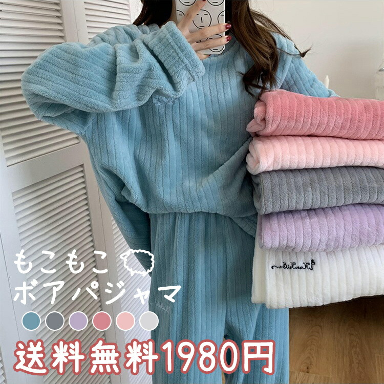 ルームウェア レディース もこもこ 冬 ボア パジャマ 秋 防寒 長袖 長ズボン ゆったり あったか 寒さ対策 可愛い シンプル おしゃれ セットアップ 部屋着 寝間着 厚手 上下セット