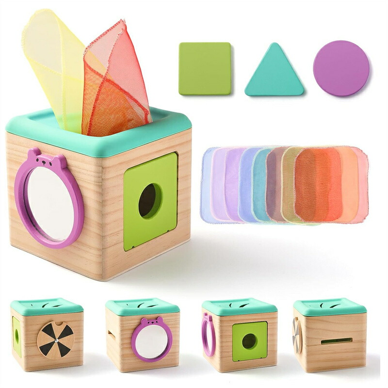 モンテッソーリおもちゃ ティッシュケース ティッシュボックスおもちゃ おもちゃ モンテッソーリ 布絵本 ティッシュ 指先訓練おもちゃ 色認知 赤ちゃんの感覚開発 型はめ 鏡 女の子男の子 3歳 ミラー