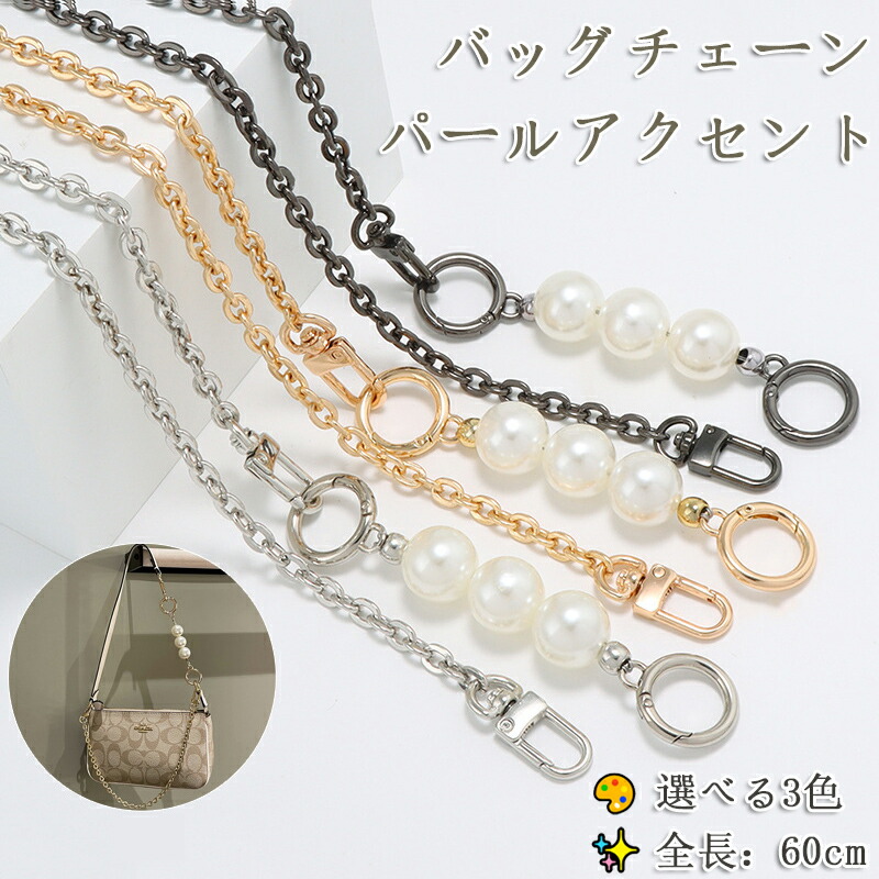 バッグチェーン パールチェーン ショルダーバッグ アンダーアームバッグ エクステンション バッグ改造 メタルパーツ シンプル マルチコーデ 全長:60cm シルバー ガンブラック ライトゴ 選べる3色