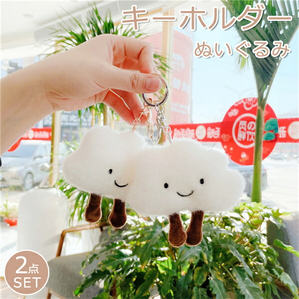 2個セット キーホルダー バッグチャーム 女性 レディース ぬいぐるみ おしゃれ 雑貨 かわいい キーリング グッズ ドール ピン ブローチ クモ 雲 2点セット ギフト プレゼント ヘアピン