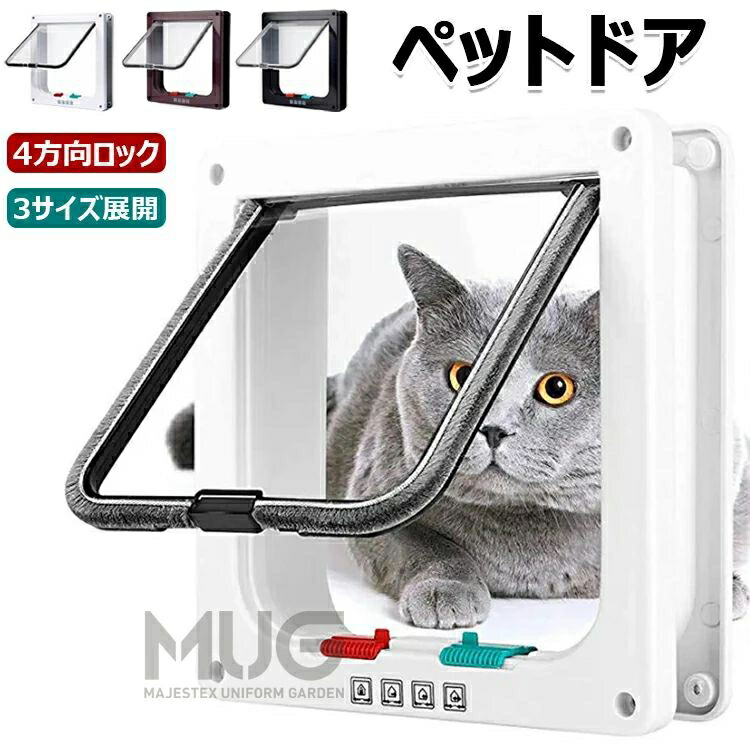 ペットドア 犬猫出入り口 キャットドア 工事不要 猫ドア 扉 壁 取り付け DIY 室内 猫扉 引き戸用 後付け 冷暖房対策 ペット 簡単 窓 出入口 4-way切替 自由自在 犬猫用ドア 勝 ロック