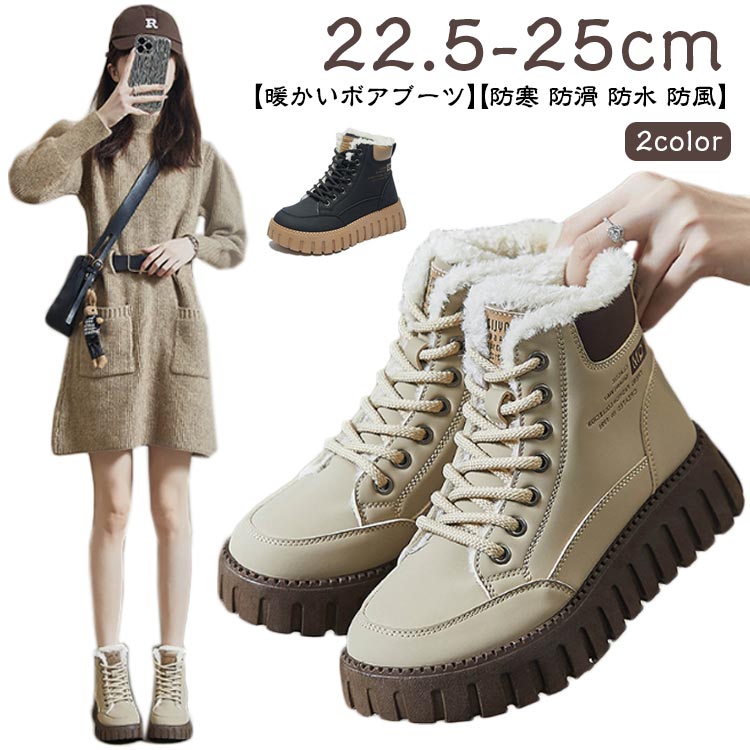 ムートンブーツ アウトドア 暖かい 厚底4cm 防水 冬靴 ショートブーツ 雪靴 防寒 防滑 ブーツ 防風 レディース ハイカット ワークブーツ レースアップブーツ シューズ 黒 編み上げ 冬ブーツ