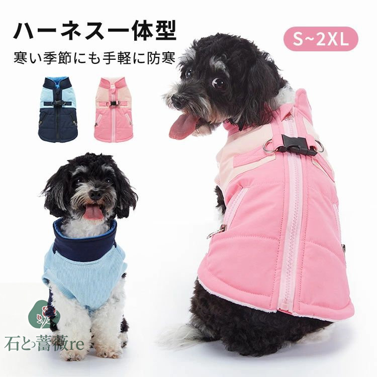 犬服 服 背中開き 冬 裏起毛 おしゃれ 冬服 犬 犬の服 ベスト ハーネス 一体型 アウター 小型犬 暖かい コート 秋冬 防寒着 中綿入り 大人気 ペットウェア