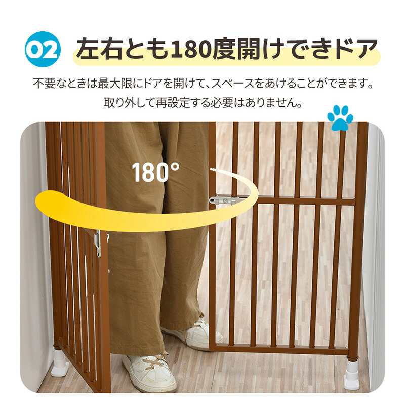 ペットゲート 木製 ペットサークル 組立不要 折りたたみ 自由レイアウト 回転ヒンジ パネル追加可 安全設計 強化脚付き 滑り止め 高さ選択可 折りたたみ式ペットサークル 小型犬 中大型犬 室内 子犬